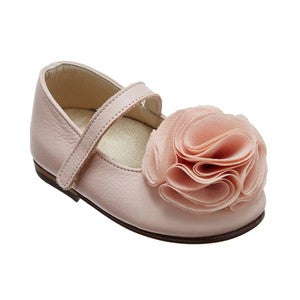 Ballerines "dusty pink" à lanière avec froufrou en cuir.