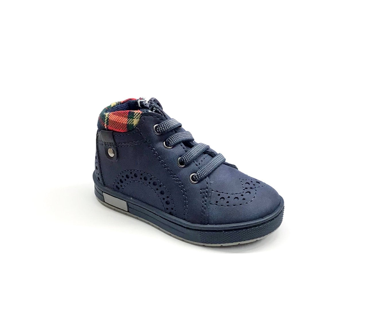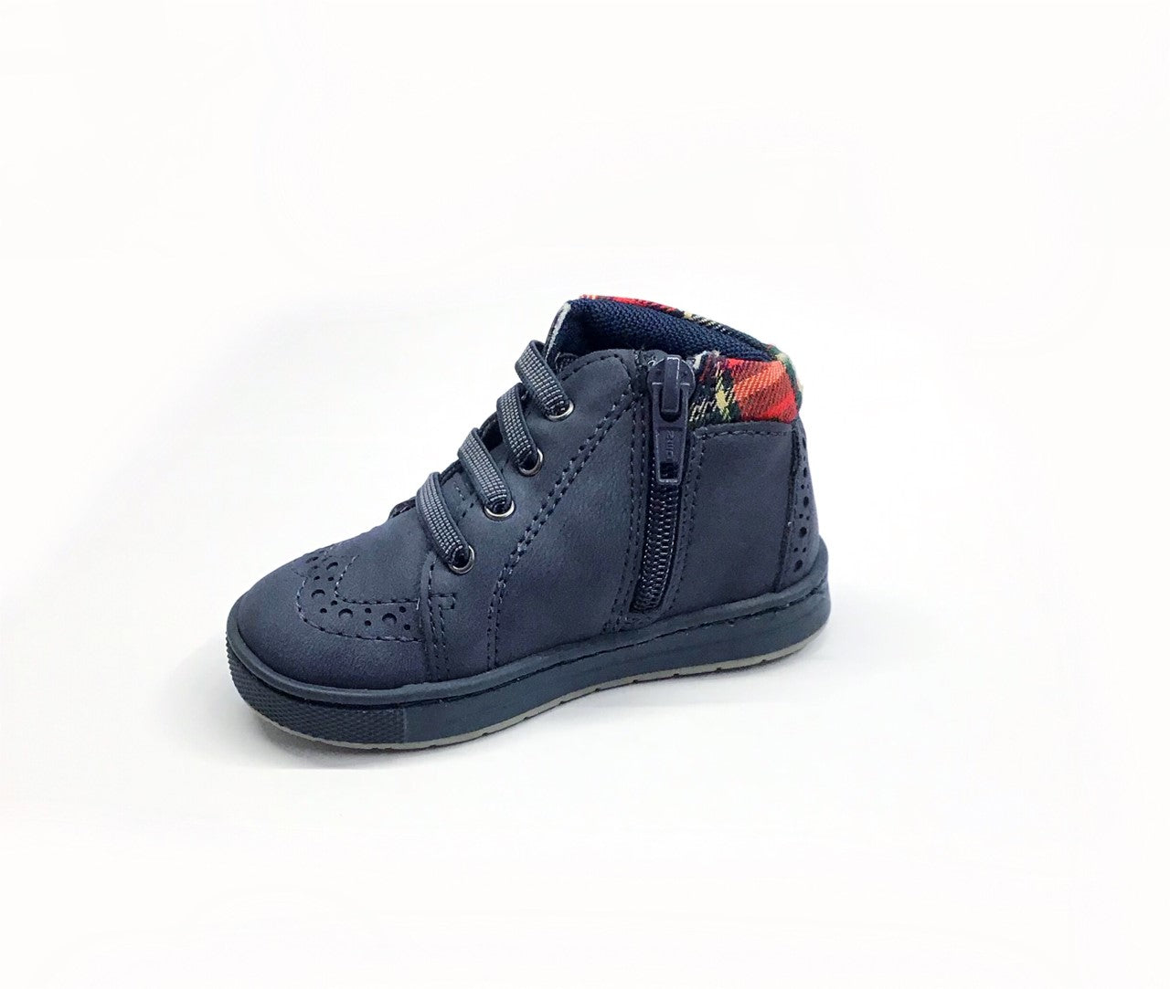Baskets bleues foncées avec une bordure à imprimé tartan