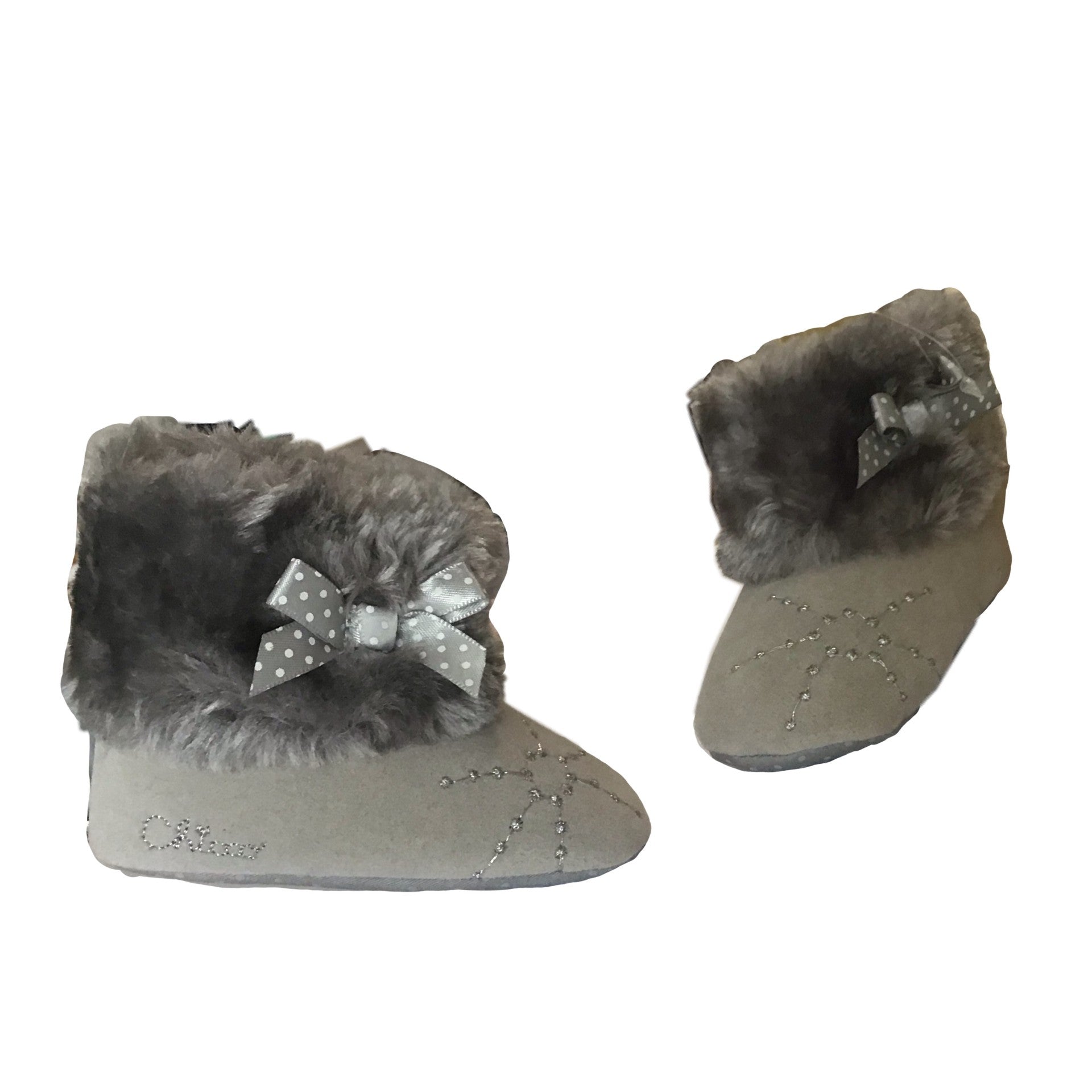 Bottines grises à fourrure avec petits nœuds