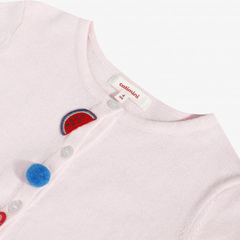 Cardigan rose pâle à manche longue avec des décorations au niveau des boutons