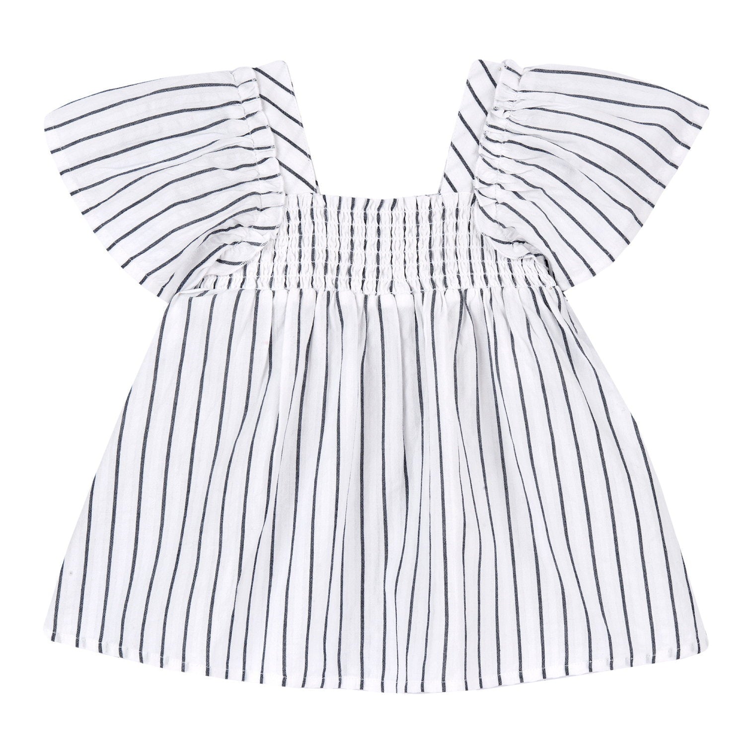 Chemiser blanc à rayures anthracites et à manches courtes flottantes