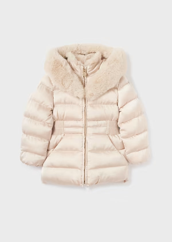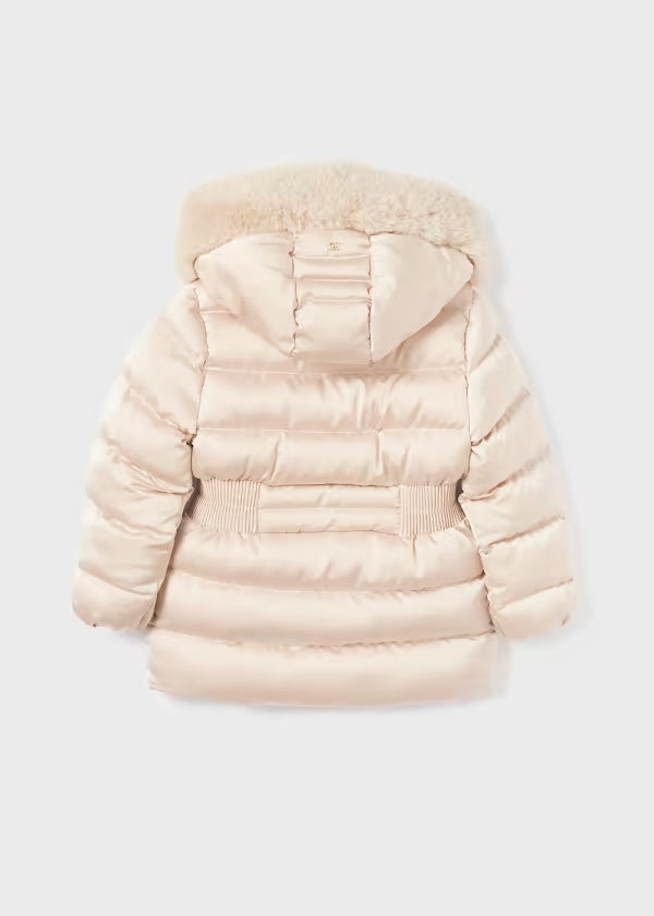 Doudoune avec un élastique au niveau de la taille et de la fourrure sur la bordure de la capuche