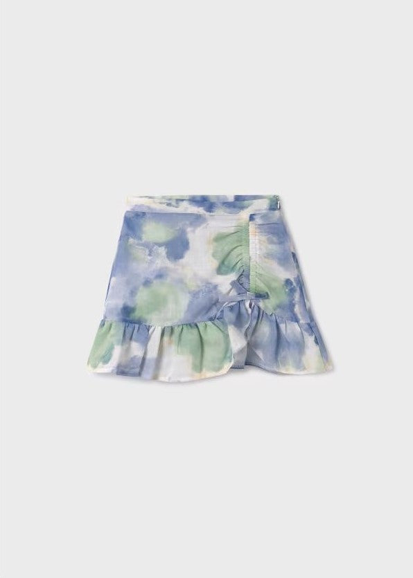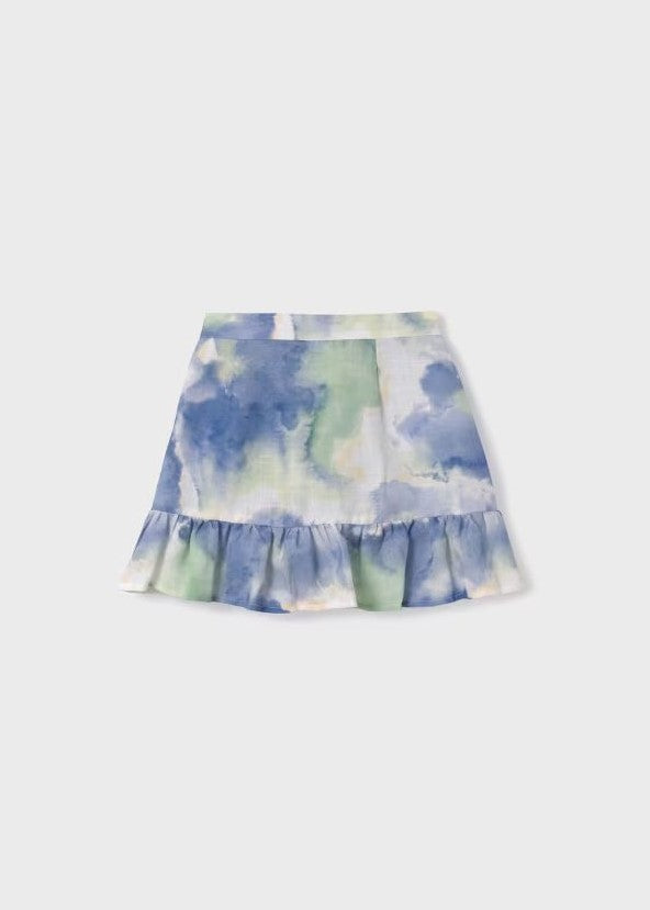 Jupe fluide et asymétrique avec des tâches d'aquarelle multicolores