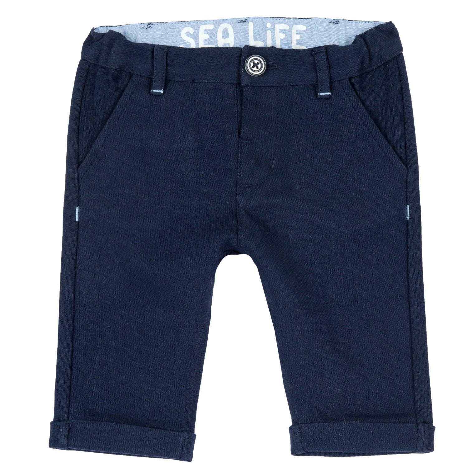 Pantalon bleu marine avec l'inscription "Sea life" à l'intérieur