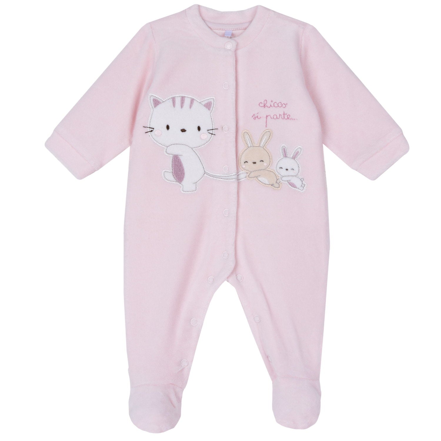 Pyjama soit rose en velours avec un chaton et des lapins, soit blanc avec des petits oursons