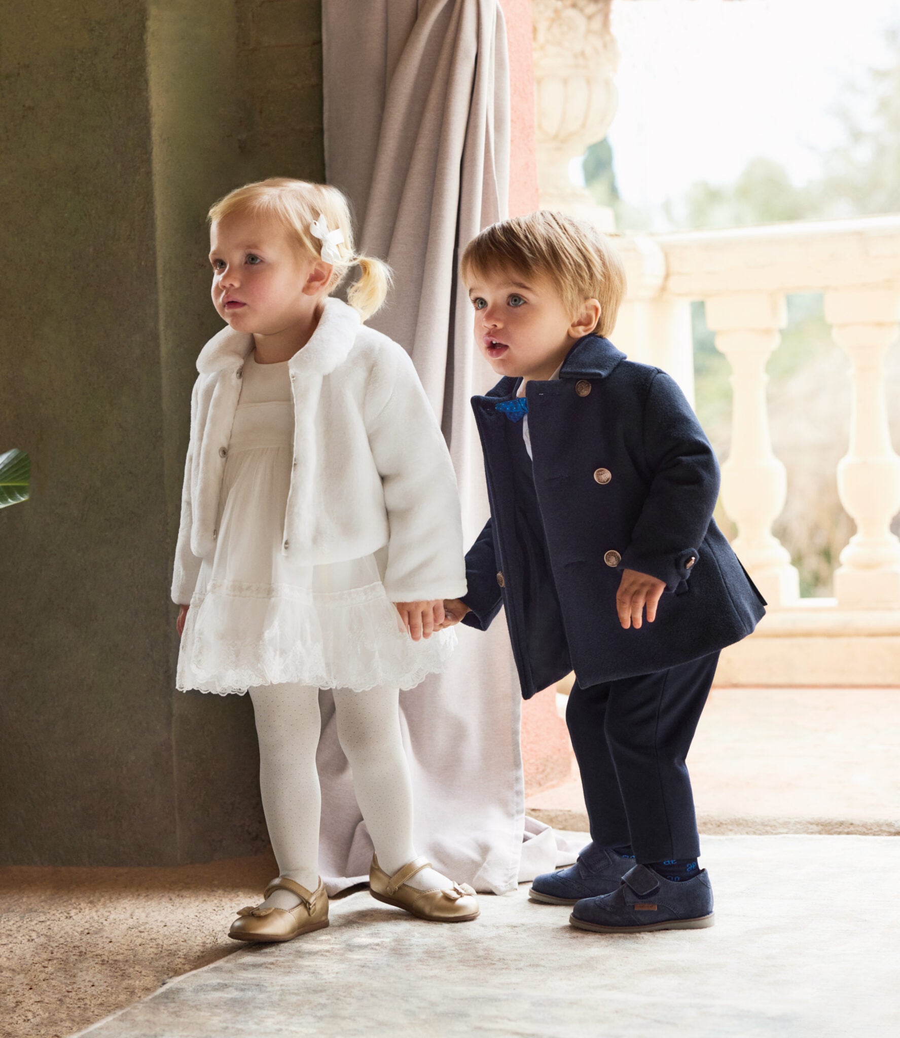 Veste en fourrure blanche avec des petits nœuds au niveau des boutons