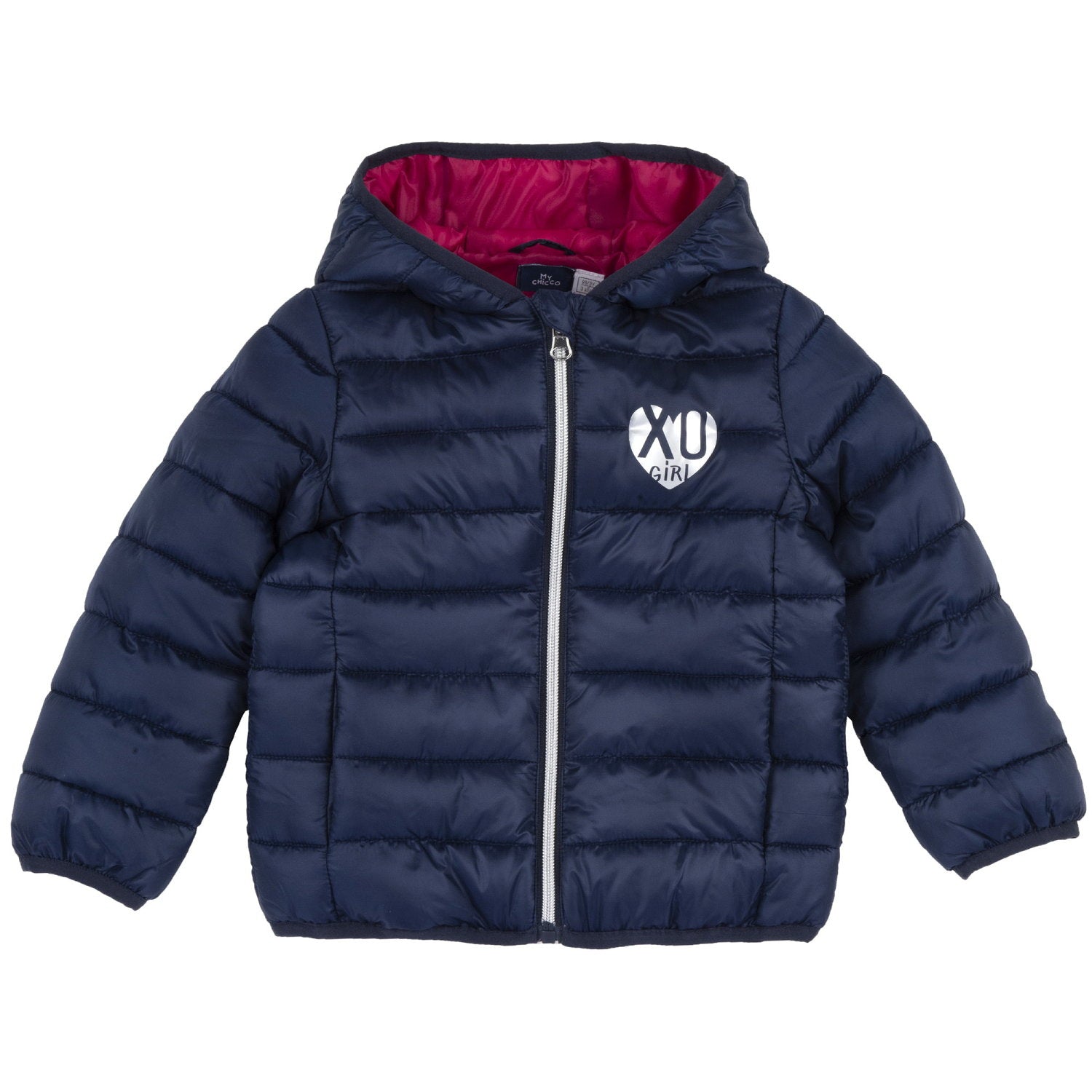 Veste rembourrée bleu marin avec l'intérieur rose et avec l'inscription argentée "XO girl"